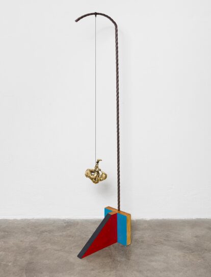 Madeira garapeira, ferro forjado, bronze com pátina, tinta acrílica e verniz impregnante