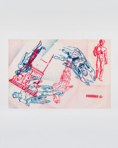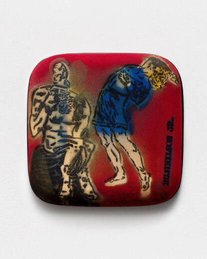 As pinturas de rua talvez não sejam a parte mais conhecida de sua produção. No entanto, revelam outra camada — colorida, pop e resolutamente bidimensional. Cada traço dá corpo à necessidade urgente de construir uma relação amorosa: entre o artista e si mesmo, e entre o eu e o mundo. Essa pulsão nasce de uma juventude marcada pela negação e pelo fechamento: de um lado, a violência de um Brasil ditatorial e sufocante; de outro, os rígidos códigos morais de uma ordem religiosa, de classe média e heteronormativa.